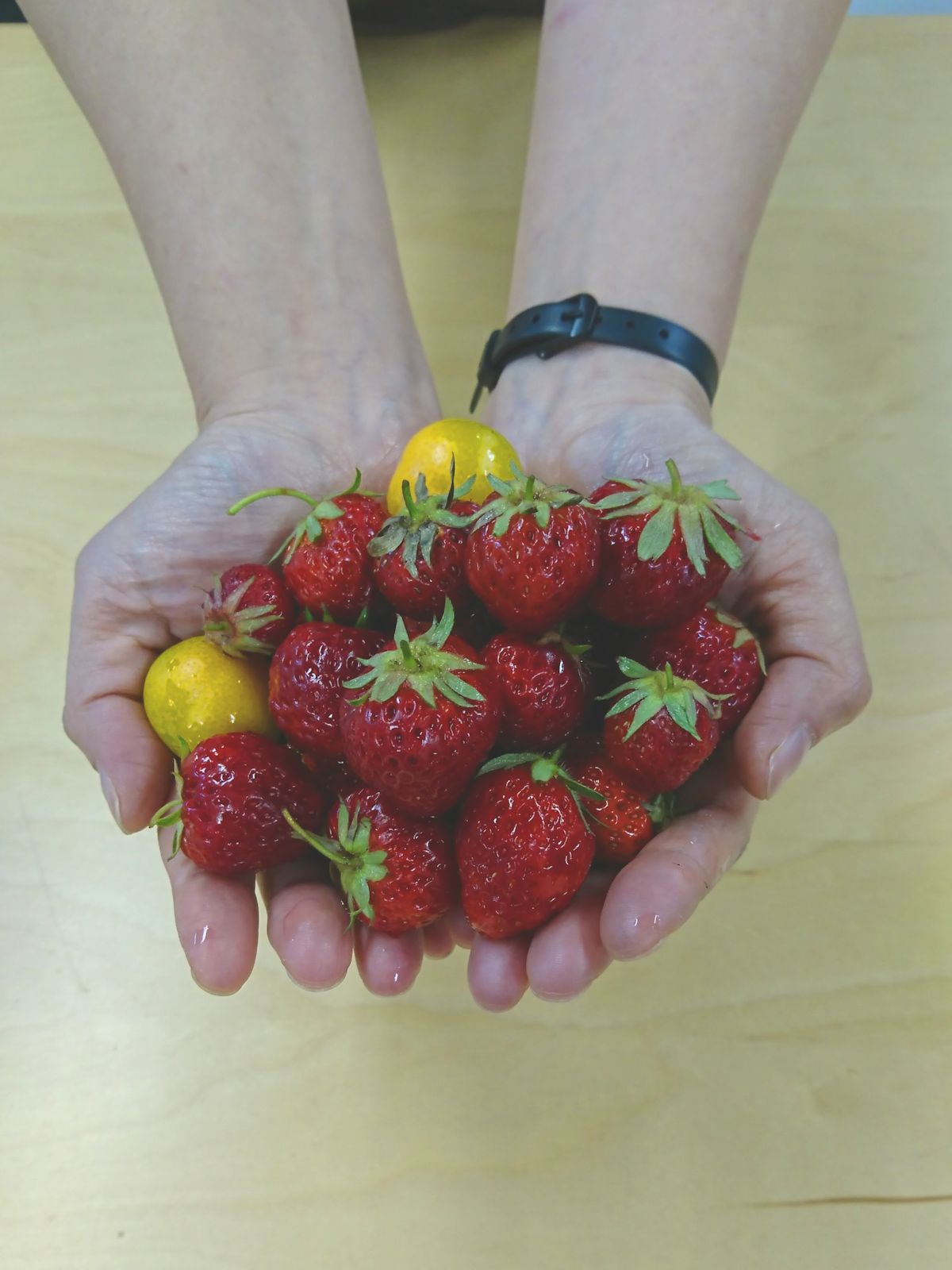5月1日、ついに、イチゴ第一陣が実りました。小躍りしてしまう勢いです。